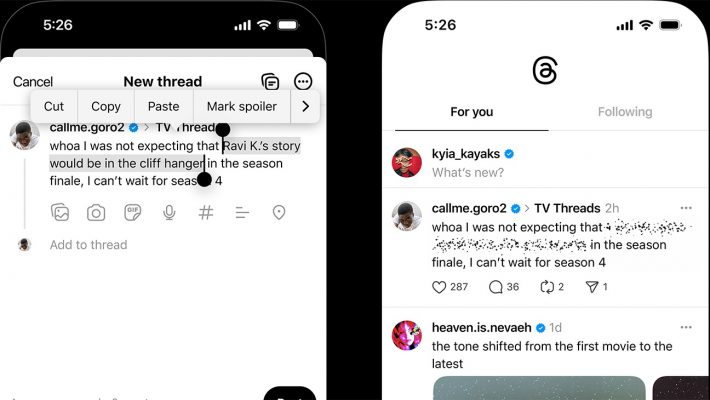 Meta – công ty mẹ của Instagram và Threads đang thử nghiệm một tính năng mới trên nền tảng Threads cho phép người dùng ẩn nội dung tiết lộ (spoiler) trong bài đăng, nhằm cải thiện trải nghiệm khi thảo luận về phim ảnh, chương trình truyền hình hoặc các sự kiện đang diễn ra.